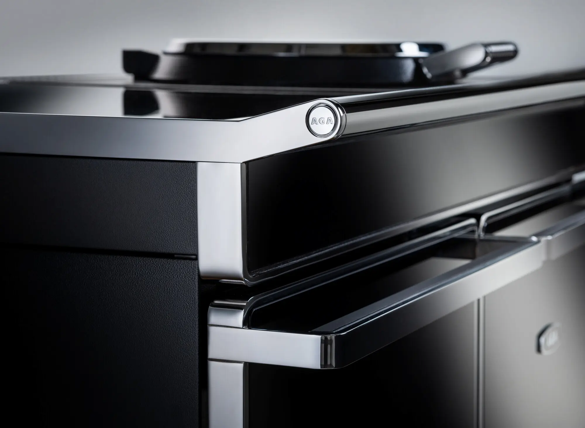 - Les détails de poignée ressort (qui empêche la transmission de la chaleur), de barre à torchon et de couvercle de plaque de cuisson ont été contemporanéisés en matière de design. La barre à torchon est logotée sur l’embout.