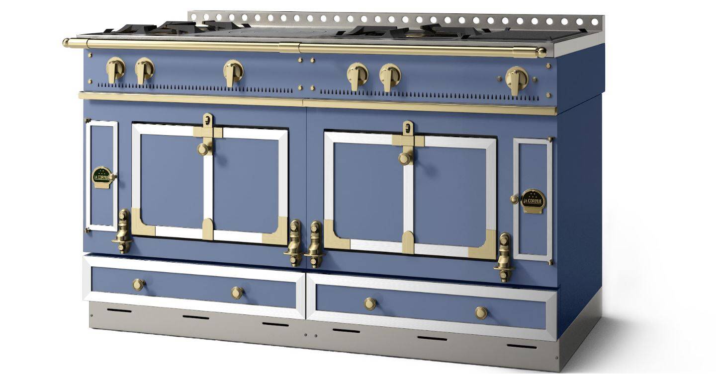 L’iconique four voûte breveté de la maison La Cornue cuit en même temps par radiation, convection et conduction. Le Château 150 est la cuisinière de ceux qui aiment piloter et maîtriser la flamme de cuisson.