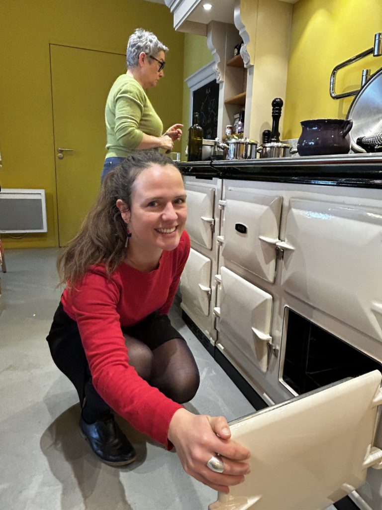 Dans les fours, c’est un ballet silencieux. Certains plats s’empilent, d’autres se serrent au fond : les fours sont beaucoup plus profonds qu’ils n’en ont l’air. Une participante questionne, surprise : « Ça fait deux heures que les lamelles de panais sont dedans ? Cathy sourit : « Voilà pourquoi AGA est une amie. Elle pardonne tout… ou presque. Le seul four qui requiert une vraie vigilance, c’est le four à rôtir. » Les invités le comprennent : AGA n’est pas une cuisinière, c’est un rythme tranquille. Une manière de cuisiner sans peur que “ça brule”, sans se crisper sur les réglages, sans courir après les minutes.